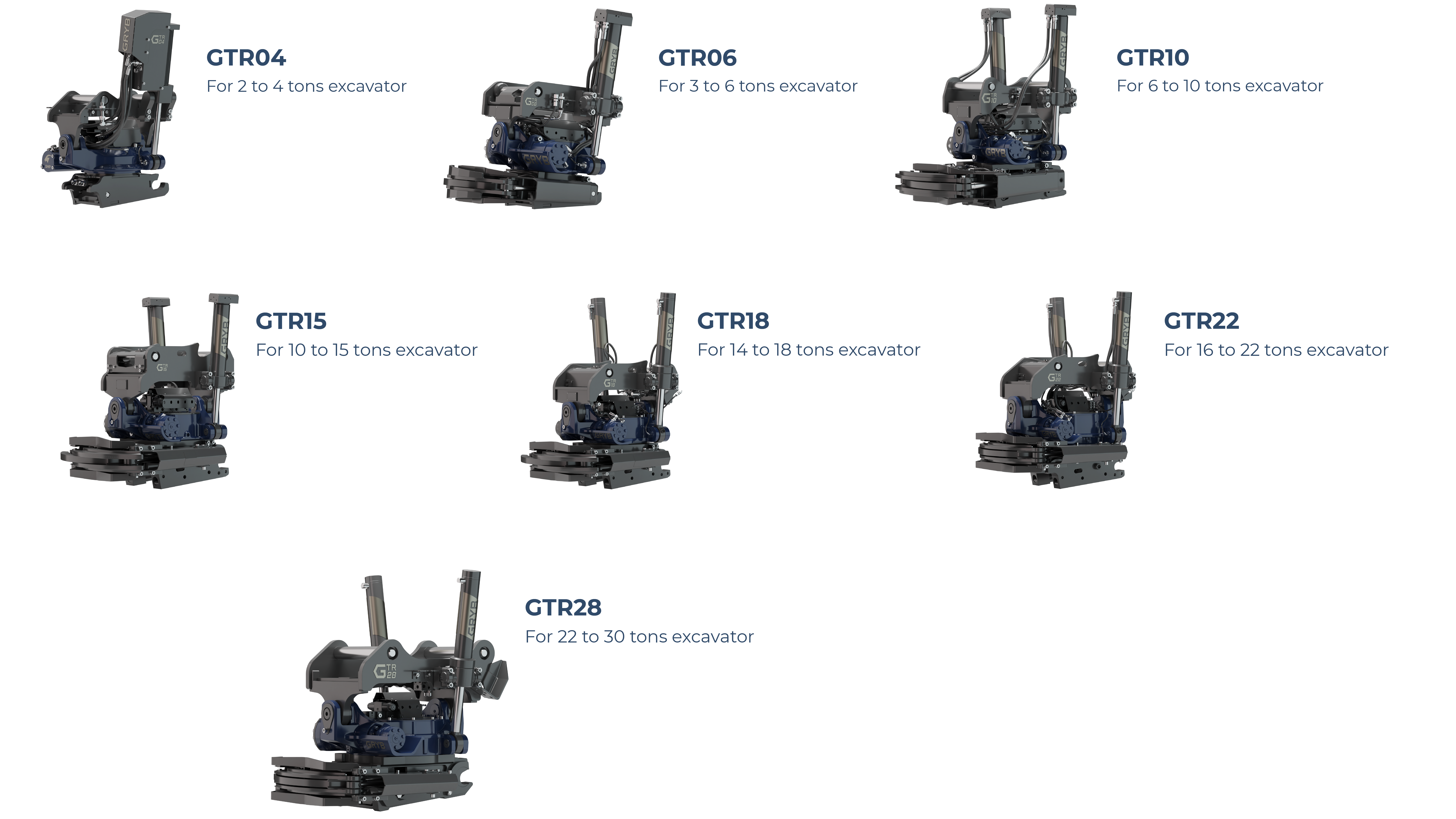 Tiltrotators fitted to crawler and excavators from 10 to 30 tons.